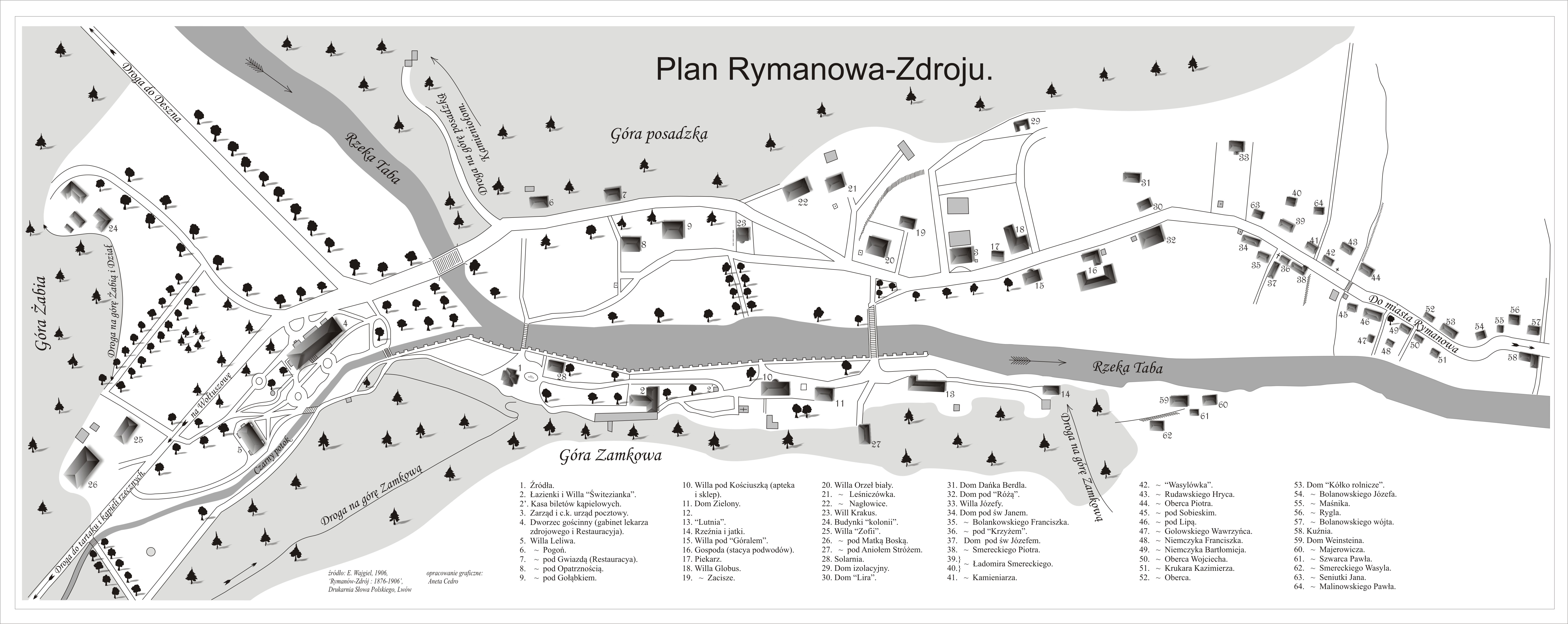 Poniżej zamieszczam plan Rymanowa-Zdroju z 1906 r., który pochodzi z książki dra Eugeniusza Wajgiela pt.